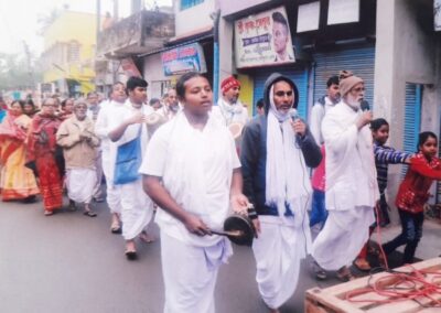 The Trust conducts the Prabhat Feri program, a beautiful spiritual gathering. Devotees come together to chant the holy names of God and engage in Nagar Sankirtan,
