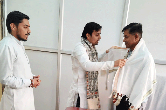 Pujya Maharaj Shri bestowed the blessings of Vijay Shri upon JDA RPS DSP officer Shri Alok Gautam Ji on the occasion of assuming his official charge.