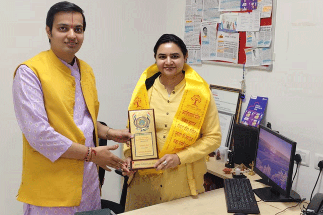Mrs. Sonu Chaudhary, AEN of Jaipur Greater Municipal Corporation, was honored with the Seva Adhikari Samman.